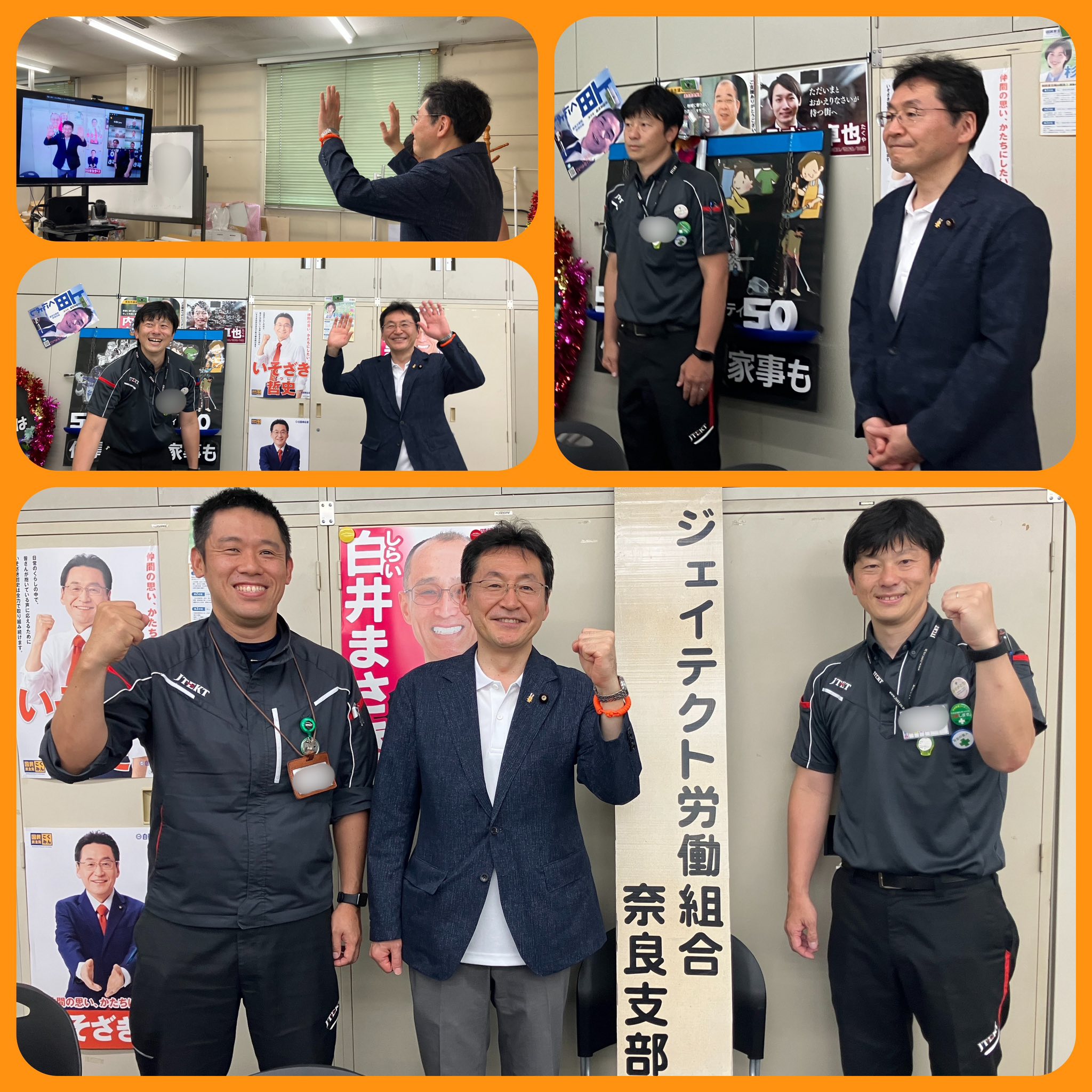 当日は奈良県で活動。午前中はHonda Cars南近畿奈良、奈良マツダ、トヨタモビリティパーツ奈良支社の各店舗訪問。ジェイテクト労組奈良支部の皆さんと昼休憩の時間に立哨活動&労組役員会議でwebご挨拶させて頂きました。